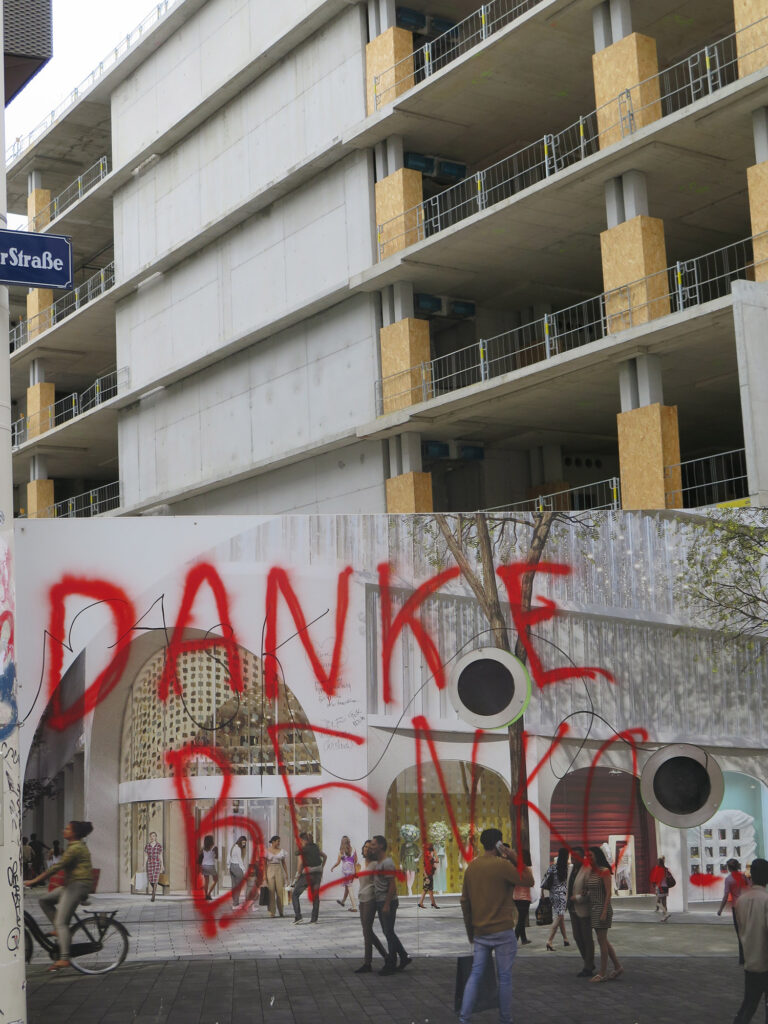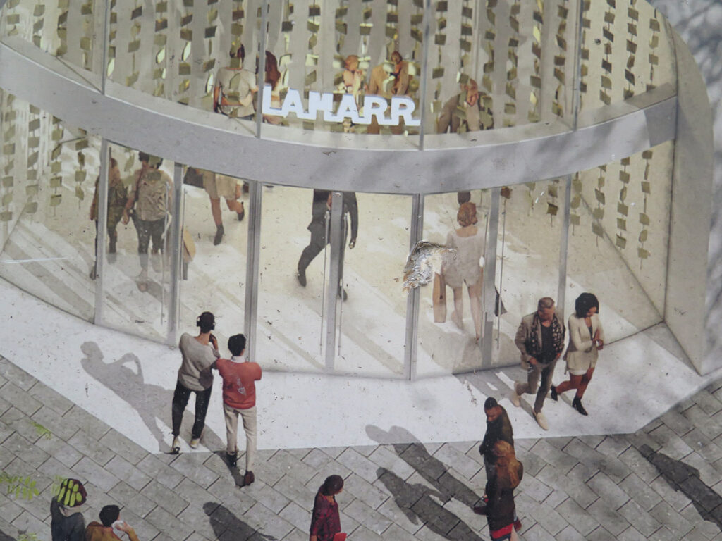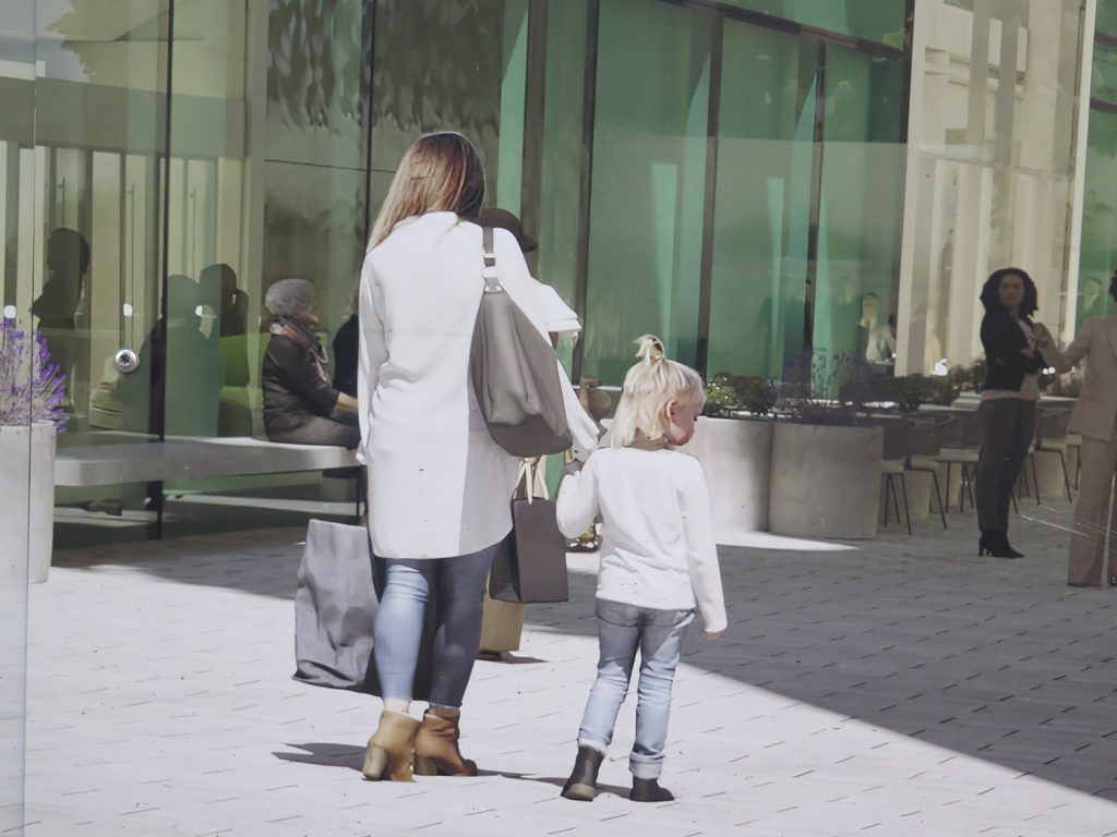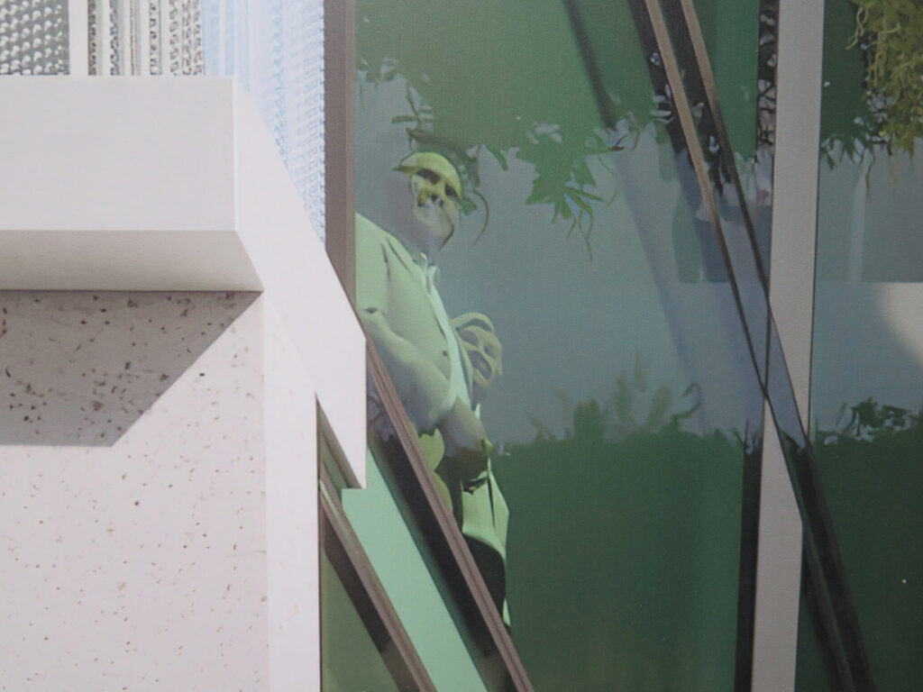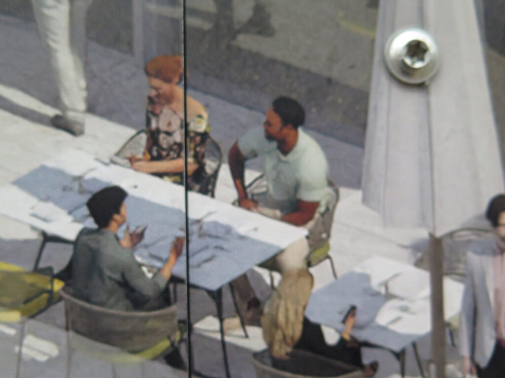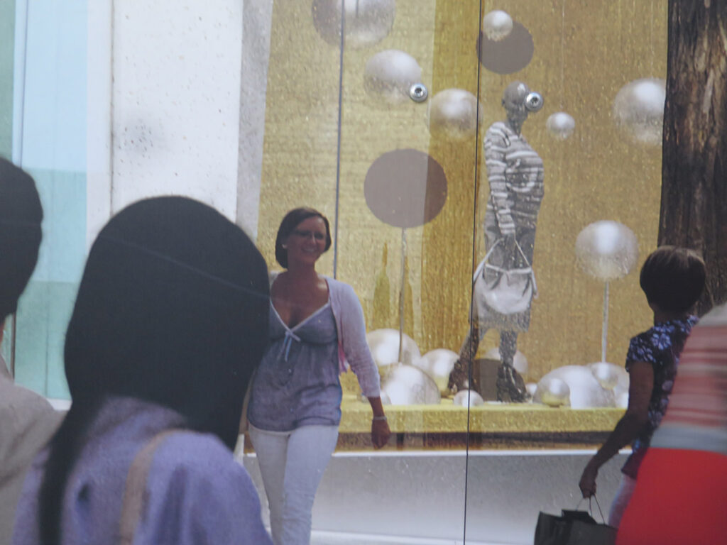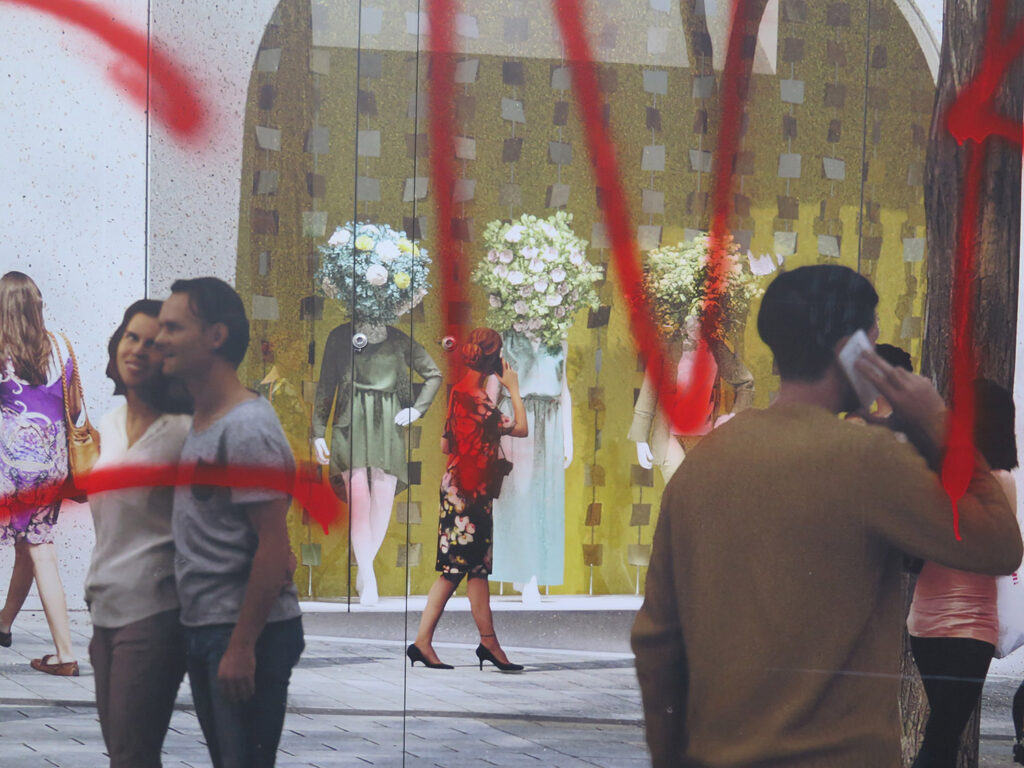 Sie sind vollbepackt mit Hand- und Einkaufstaschen, die Frauen, die in der Computersimulation das Wiener Nobel-Kaufhaus „Lamarr“ innen wie außen bevölkern. Lachende, junge Frauen in legerer Sommerbekleidung. Weiße, zahlungskräftige Frauen, selten auch People of Color – divers liegt ja im Trend. Sie alle säumen den Bauzaun, die den PassantInnen an der Adresse Mariahilfer Straße 10-18 Lust auf den „Luxury Department Store“ machen sollen. Doch ebendort herrschte 2004 Stillstand. Keine Bautätigkeit, keine Arbeiter, nur verlassene Betongerippe. Der durch die Machenschaften von René Benko verursache Crash der Signa Holding GmbH ließ den „Lamarr“-Traum jäh platzen. Die Immobilie wurde verkauft. Was bleibt, ist die Erinnerung an die Hochglanz-Renderings mit den Als-ob-Menschen einer idealisierten Wirtschaftswelt. Manche Nebenfiguren wirken fratzenhaft: Kapitalismuszombies. Realität und Imagination, Sein und Schein stoßen hier brutal aufeinander: Protz und Pleite.