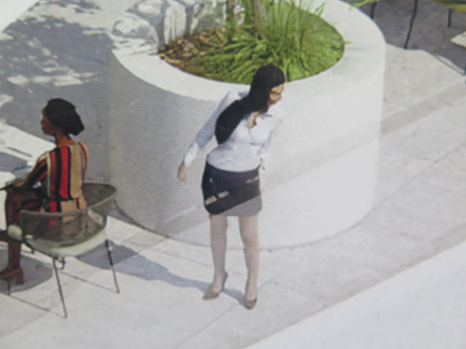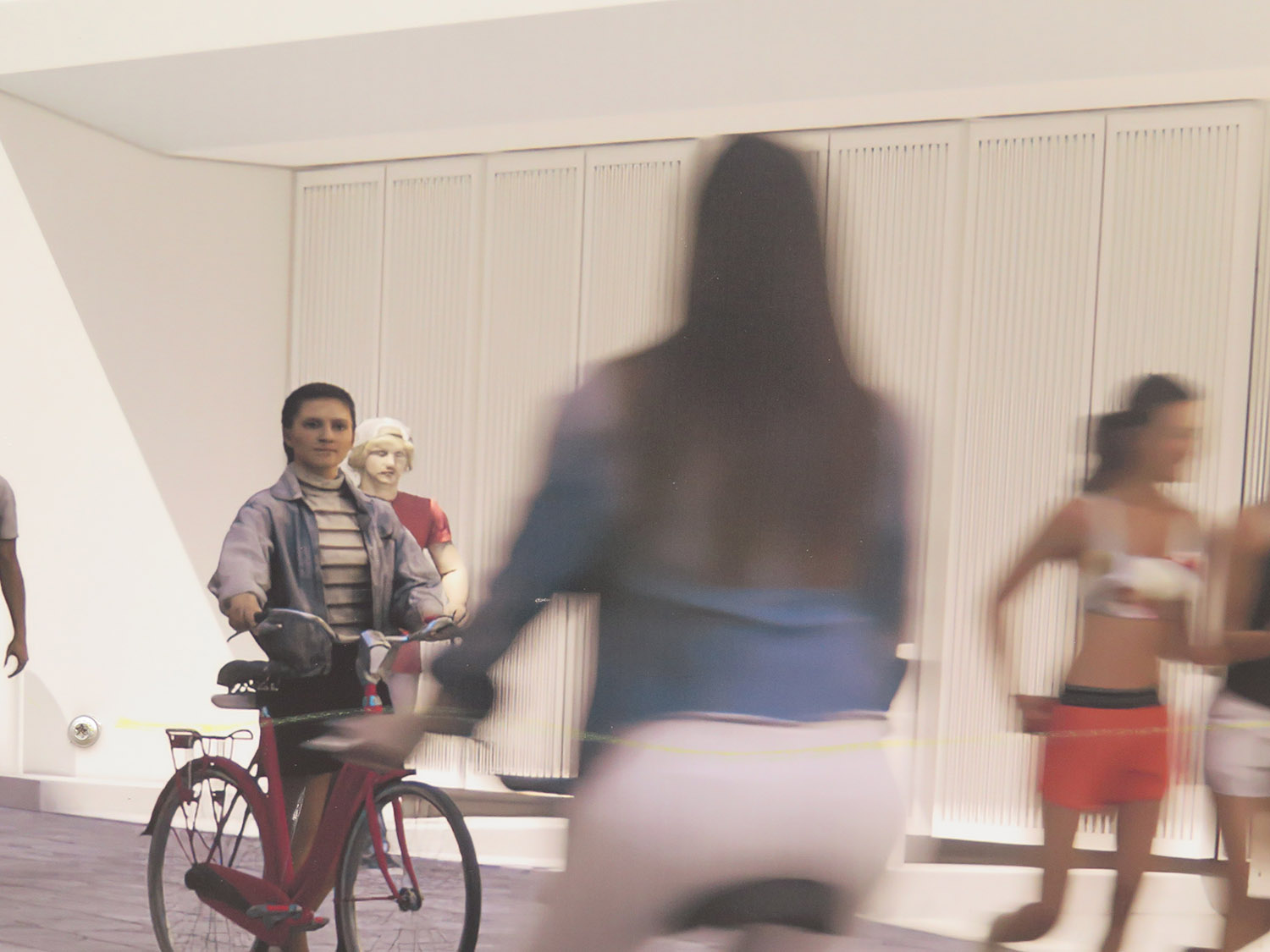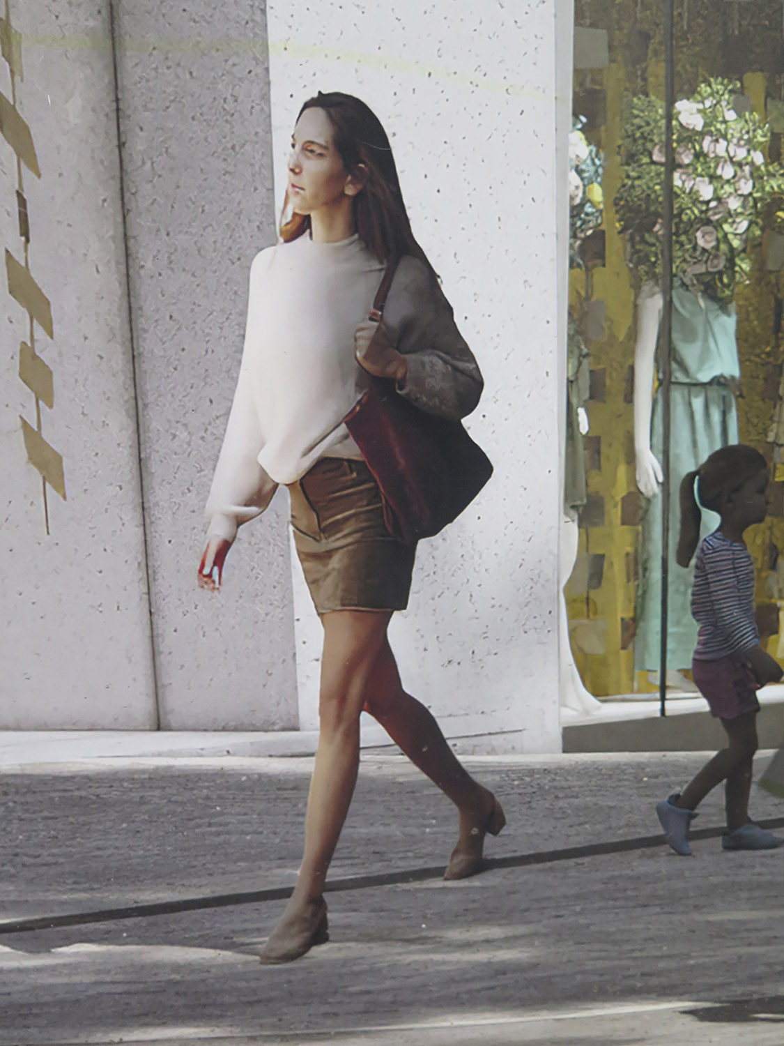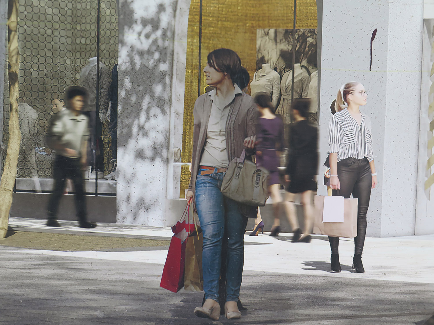 Sie sind vollbepackt mit Hand- und Einkaufstaschen, die Frauen, die in der Computersimulation das Wiener Nobel-Kaufhaus „Lamarr“ innen wie außen bevölkern. Lachende, junge Frauen in legerer Sommerbekleidung. Weiße, zahlungskräftige Frauen, selten auch People of Color – divers liegt ja im Trend. Sie alle säumen den Bauzaun, die den PassantInnen an der Adresse Mariahilfer Straße 10-18 Lust auf den „Luxury Department Store“ machen sollen. Doch ebendort herrschte 2004 Stillstand. Keine Bautätigkeit, keine Arbeiter, nur verlassene Betongerippe. Der durch die Machenschaften von René Benko verursache Crash der Signa Holding GmbH ließ den „Lamarr“-Traum jäh platzen. Die Immobilie wurde verkauft. Was bleibt, ist die Erinnerung an die Hochglanz-Renderings mit den Als-ob-Menschen einer idealisierten Wirtschaftswelt. Manche Nebenfiguren wirken fratzenhaft: Kapitalismuszombies. Realität und Imagination, Sein und Schein stoßen hier brutal aufeinander: Protz und Pleite.