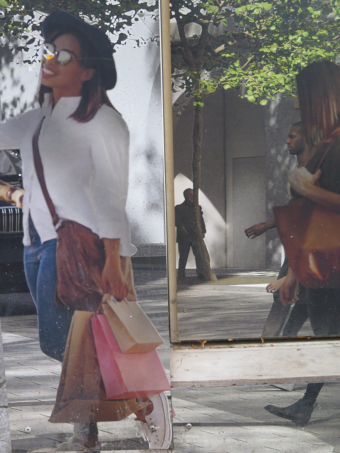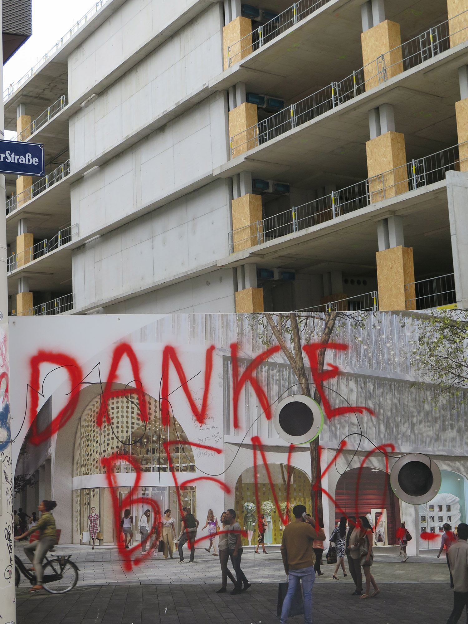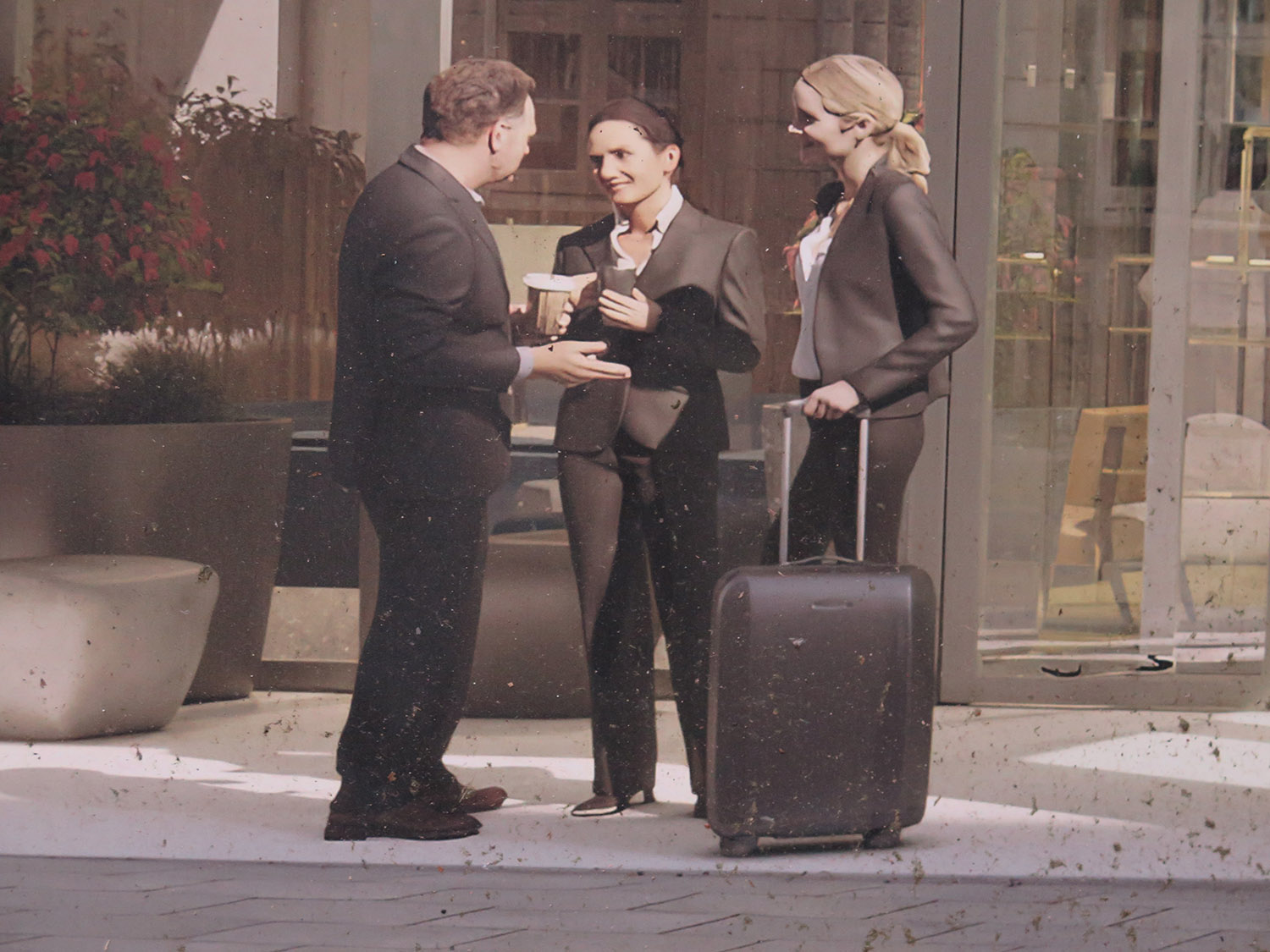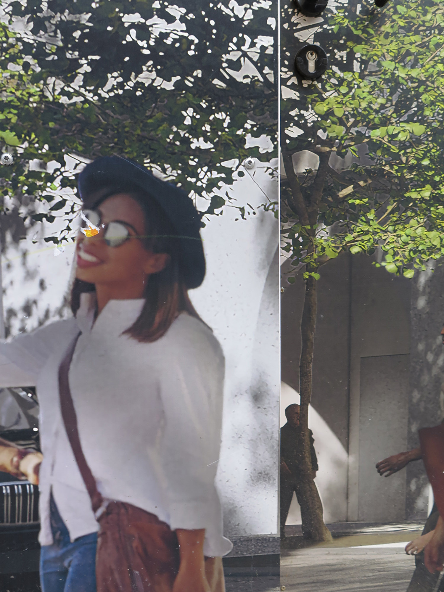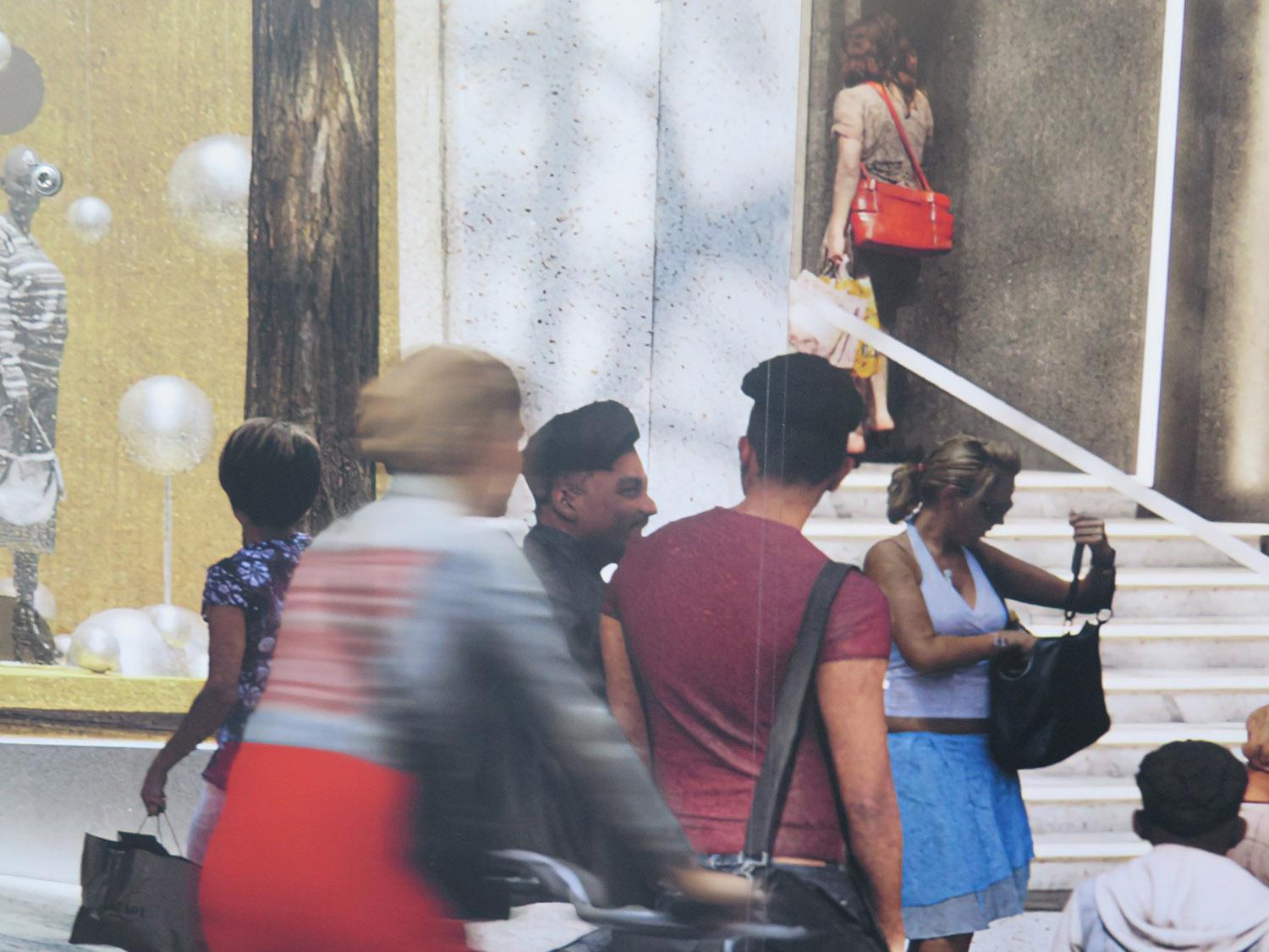 Sie sind vollbepackt mit Hand- und Einkaufstaschen, die Frauen, die in der Computersimulation das Wiener Nobel-Kaufhaus „Lamarr“ innen wie außen bevölkern. Lachende, junge Frauen in legerer Sommerbekleidung. Weiße, zahlungskräftige Frauen, selten auch People of Color – divers liegt ja im Trend. Sie alle säumen den Bauzaun, die den PassantInnen an der Adresse Mariahilfer Straße 10-18 Lust auf den „Luxury Department Store“ machen sollen. Doch ebendort herrschte 2004 Stillstand. Keine Bautätigkeit, keine Arbeiter, nur verlassene Betongerippe. Der durch die Machenschaften von René Benko verursache Crash der Signa Holding GmbH ließ den „Lamarr“-Traum jäh platzen. Die Immobilie wurde verkauft. Was bleibt, ist die Erinnerung an die Hochglanz-Renderings mit den Als-ob-Menschen einer idealisierten Wirtschaftswelt. Manche Nebenfiguren wirken fratzenhaft: Kapitalismuszombies. Realität und Imagination, Sein und Schein stoßen hier brutal aufeinander: Protz und Pleite.
